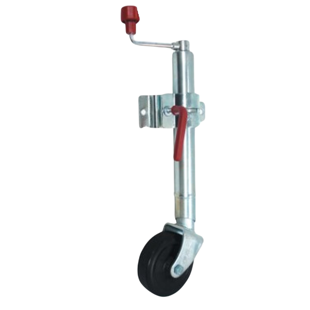 The Alko 626100 is a standard height jockey wheel with a 150mm (6") solid tyre. The zinc coated 48mm diameter shaft has 2 clamping positions providing a lift range of 202mm to 649mm between the ground and centre of drawbar. This unit is ideal for caravans or trailers which do not require much movement once detached from tow vehicle. If movement is required or using on soft or uneven ground then larger diameter jockey wheels are recommended.