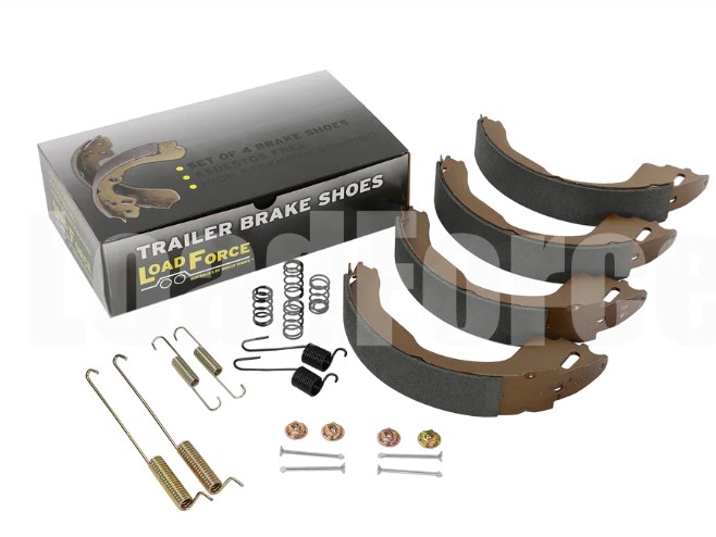 LoadForce 10 x 2 inch standard American electric brake shoe kit. Comes as a set of 4 shoes includes return and retaining spring hardware kit to service one axle. Suits the Dexter and other USA brands of backing plates.