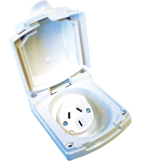 Power Outlet, Clipsal, 10amp, Weatherproof lid, WHITE. Used to TAKE 240V power FROM an RV.