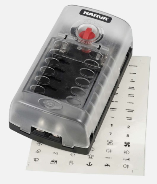 NARVA 12 Way Fuse Box with 84 Adhesive Fuse Box Cover Labels Included