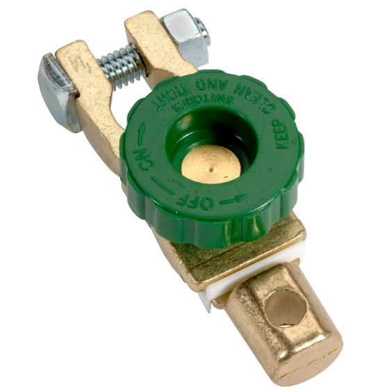 Simple and easy to install, the existing negative battery terminal fastens to the rear of the master terminal. No new termination is required. Turn the dial to break the connection and disable the battery.