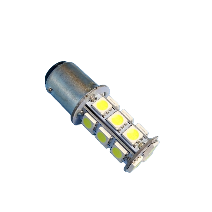 LED BA15B 12v bulb, 18 Cool White LEDs, Parallel pins, double contact.