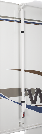 This Cradle support, roof rafter and leg support is an ideal additional to awnings over 19' long. Position near the centre of the awning and the awning roller is supported during travel on the cradle. When the awning is extended it is a simple process to extend the rafter using the tension lever, and drop the leg to keep the awning roll straight and rigid.