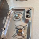 • Kitchenette with cold water sink & 2 burner cooktop