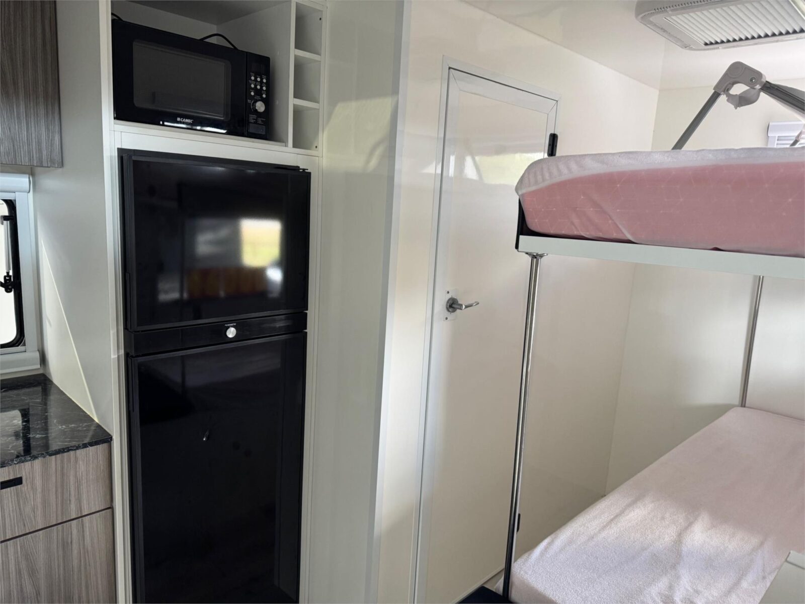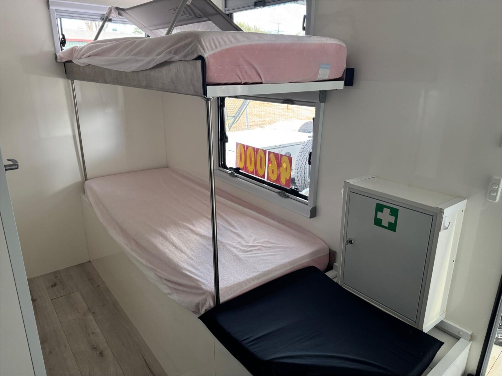 Great unit that presents as new. Suited for a tray back truck as unit weighs 1500KG. 2 bunk beds at rear and large bed above cabin.