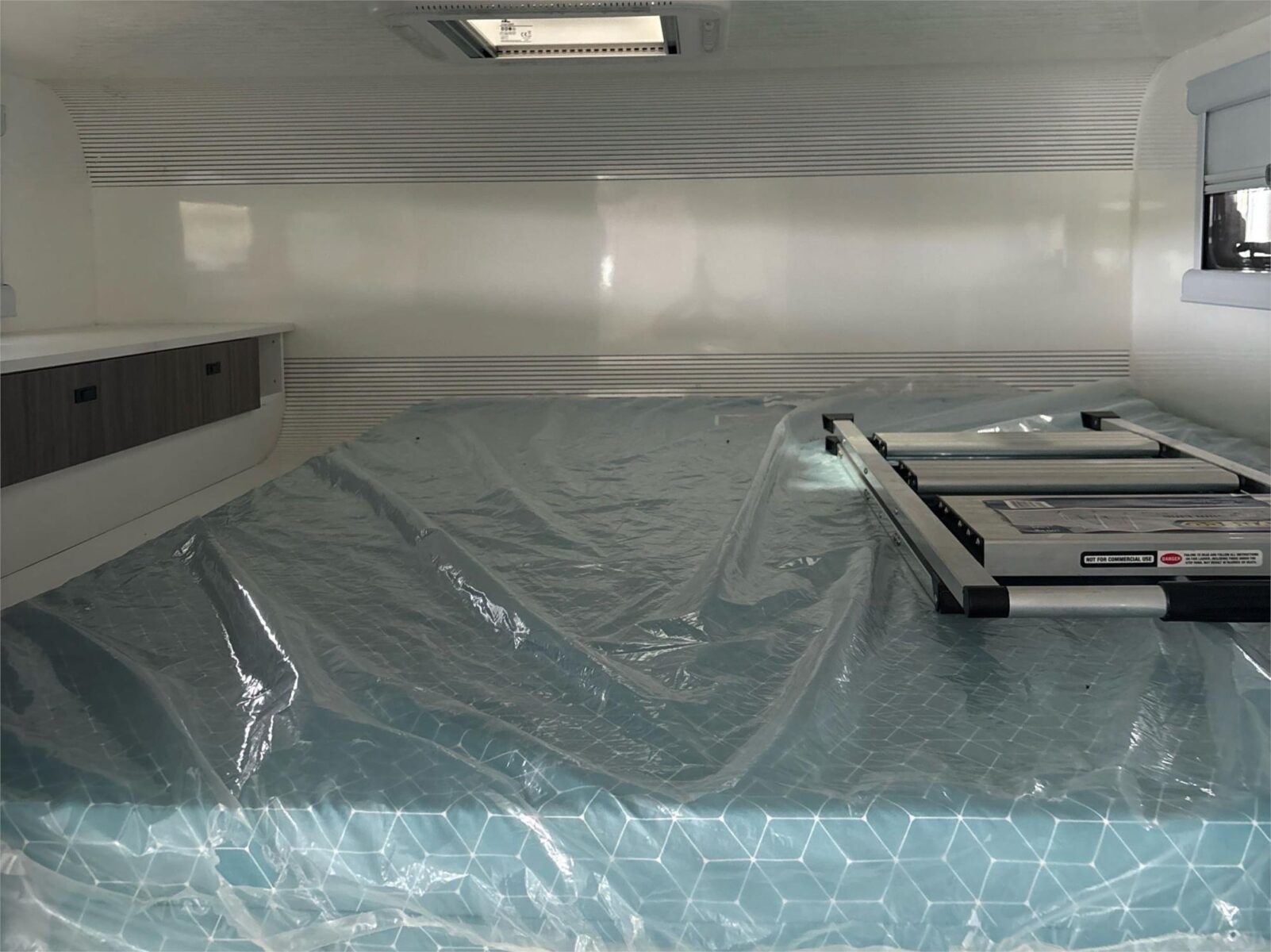• Large Bed Over Cab with Windows & Ceiling Hatcha