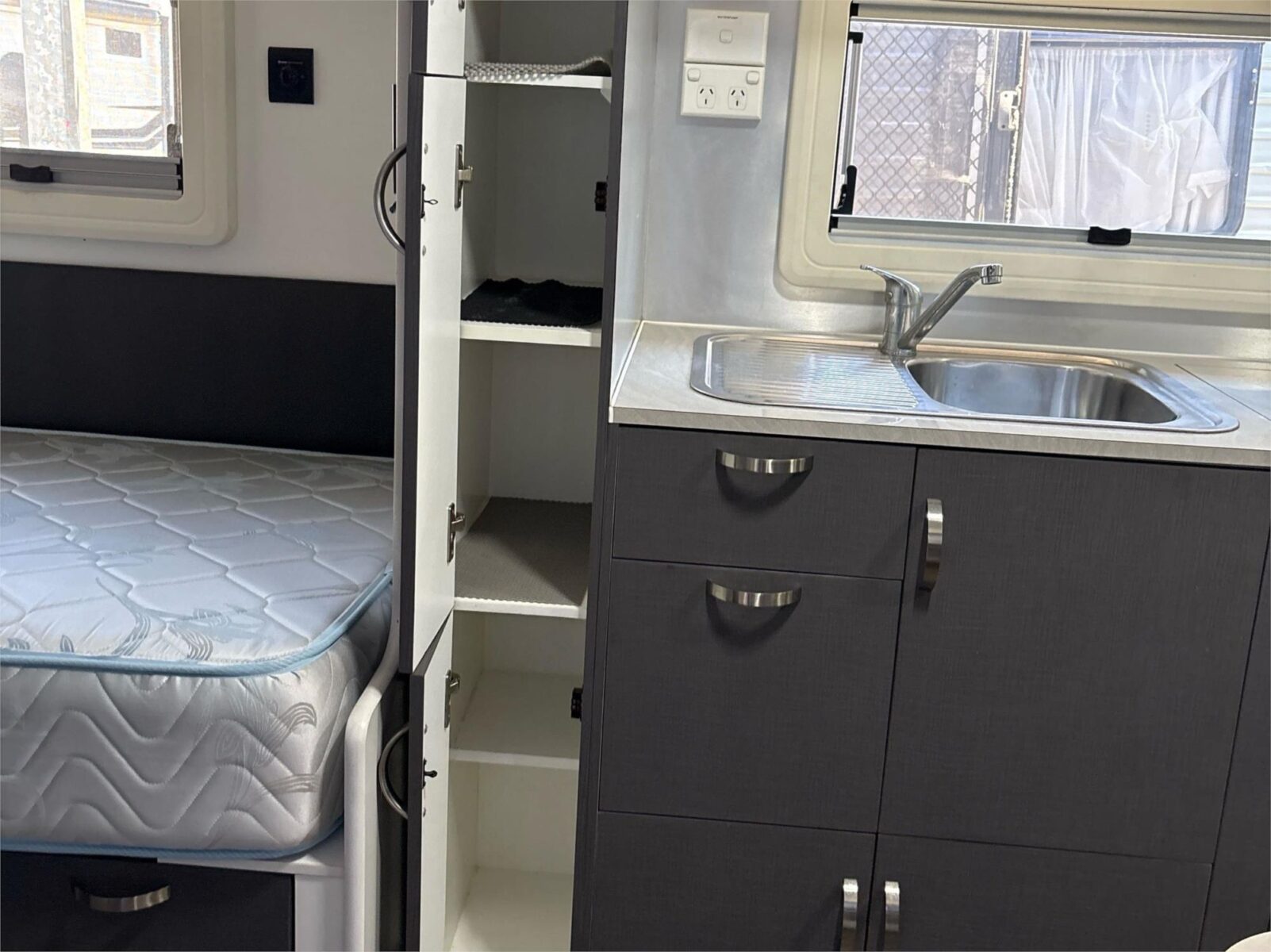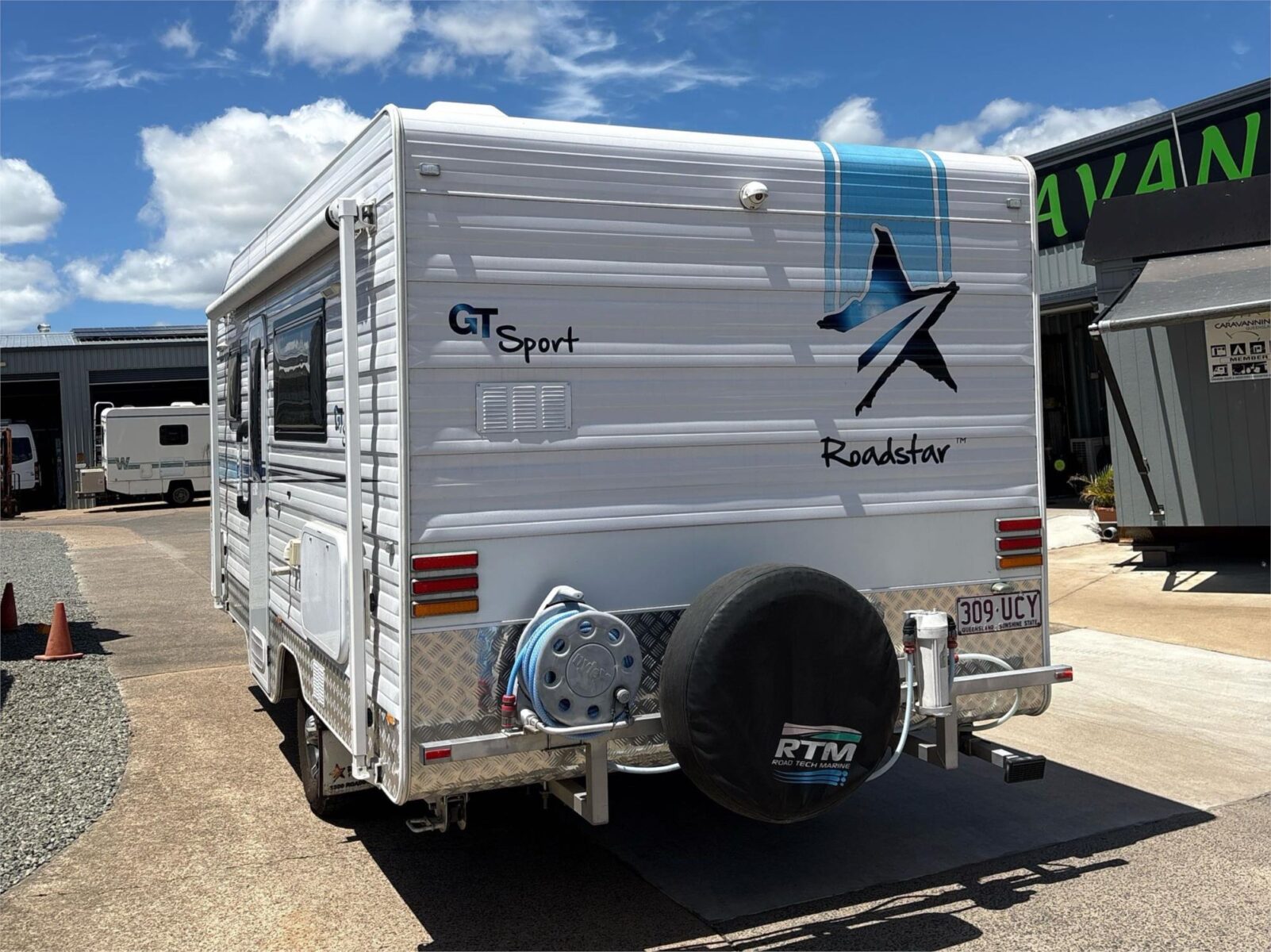 A well cared for 16ft 8″ Roadstar GT Sports with a modern interior & a rear ensuite. 2 water tanks and set up so you can run a portable solar panel for off grid stays.