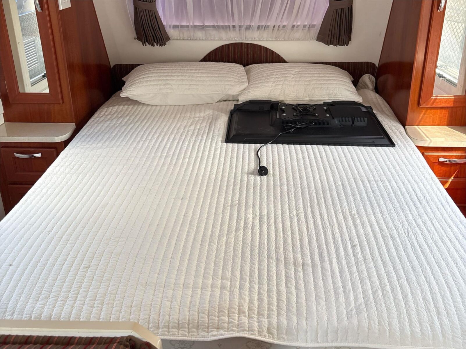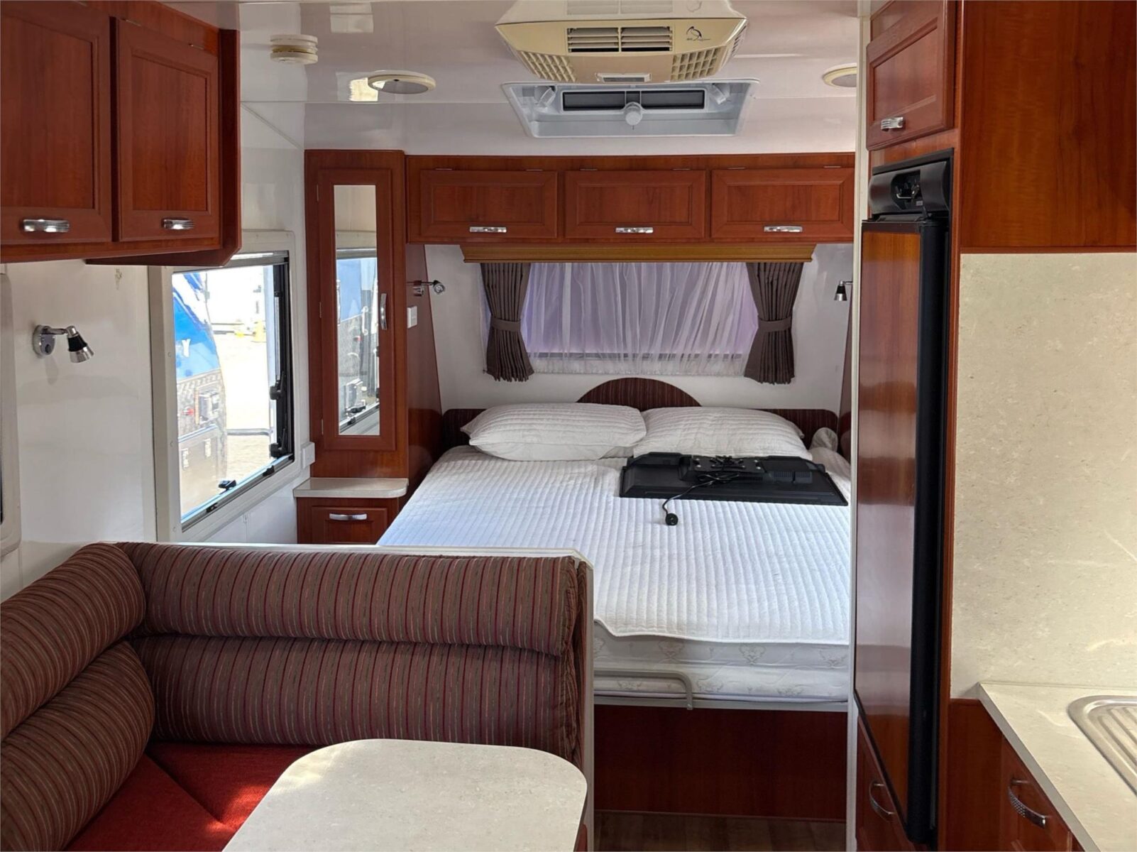 A well cared for caravan, shedded when not in use. Priced to sell at only $35,900-. Has a full rear ensuite with a washing machine. Has 2 house batteries that are run from a protable solar panel that is included.